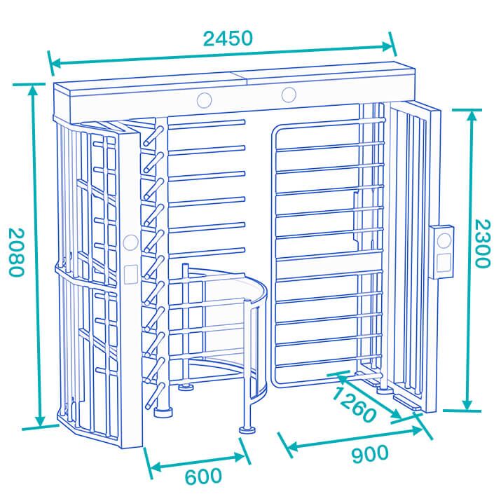 - Full height turnstile DS408 is the most obvious feature is the turnstile with wheelchair gate for disabled access. Which is provides a high safety and convenient access solution for disabled people.